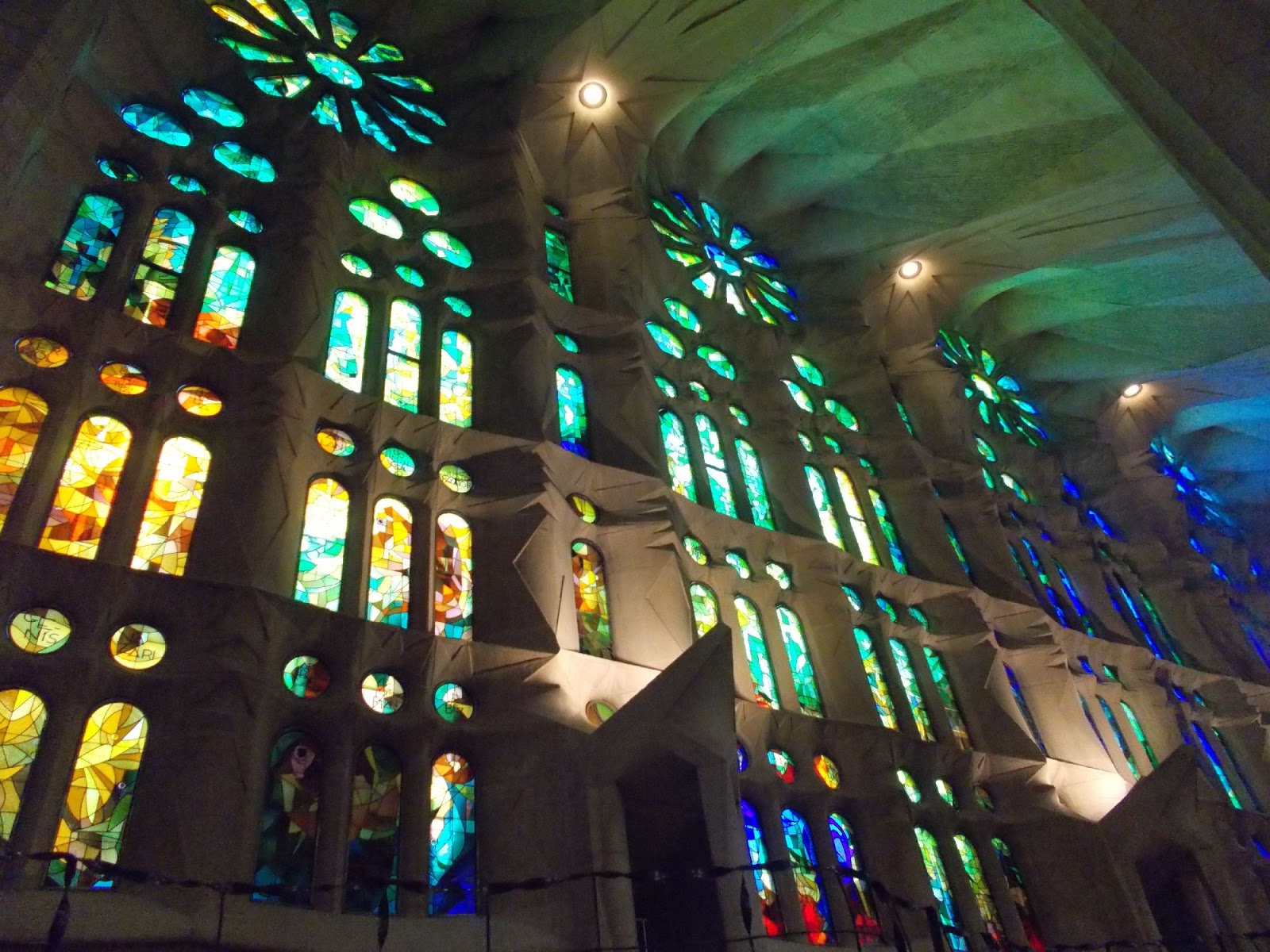 Podzemím jsme vyšli před západní portál, ale zase hned zašli, protože jsem do hlavní lodi chtěl vstoupit historicky nejstarší částí. No, mohu říci, že chrám je uvnitř snad ještě větší a rozmanitější než zvenčí. Nepopsatelný, tedy nikoli popsatelný v jednom článku, však také o Sagradě Familia existuje spousta monografií. Žádná však nedokáže zachytit ten dojem, když jste vevnitř. Desetitisíce detailů tvoří ohromující atmosféru.